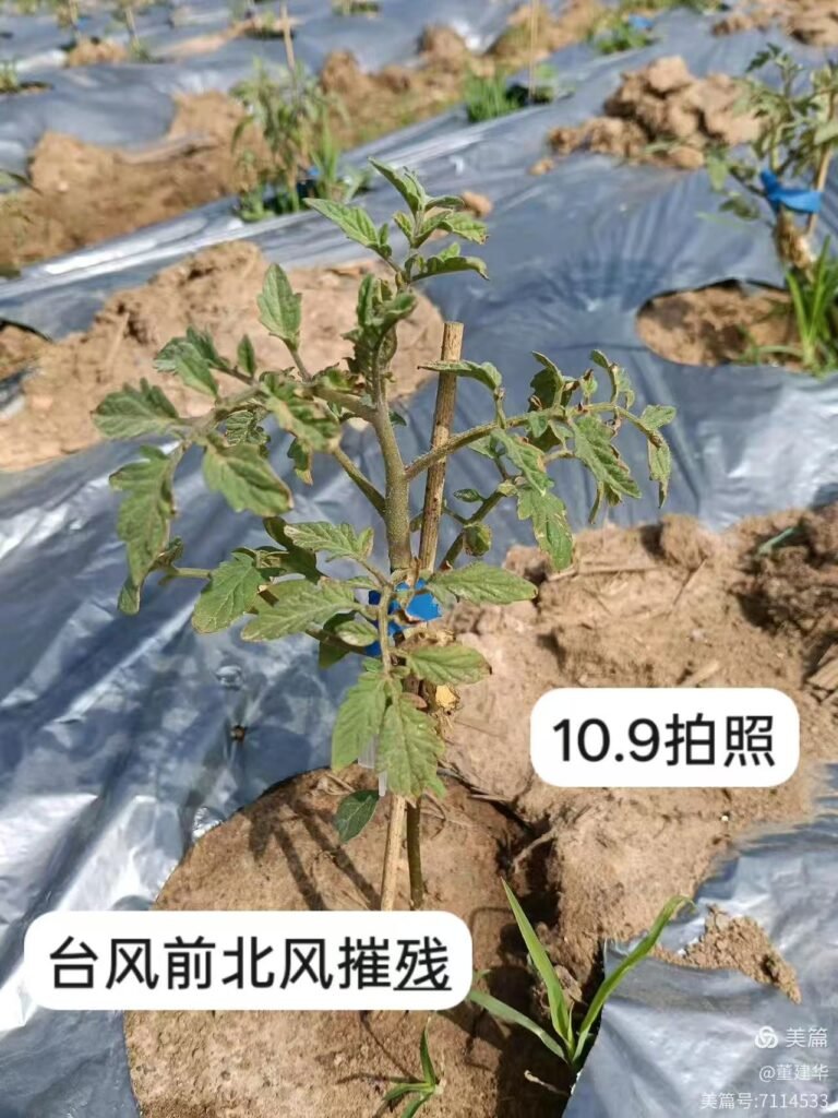 A severe typhoon on October 3 severely stressed strawberry tomato fields in Yangjiang, causing widespread withering, wilting, and growth stagnation.